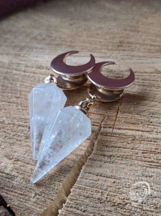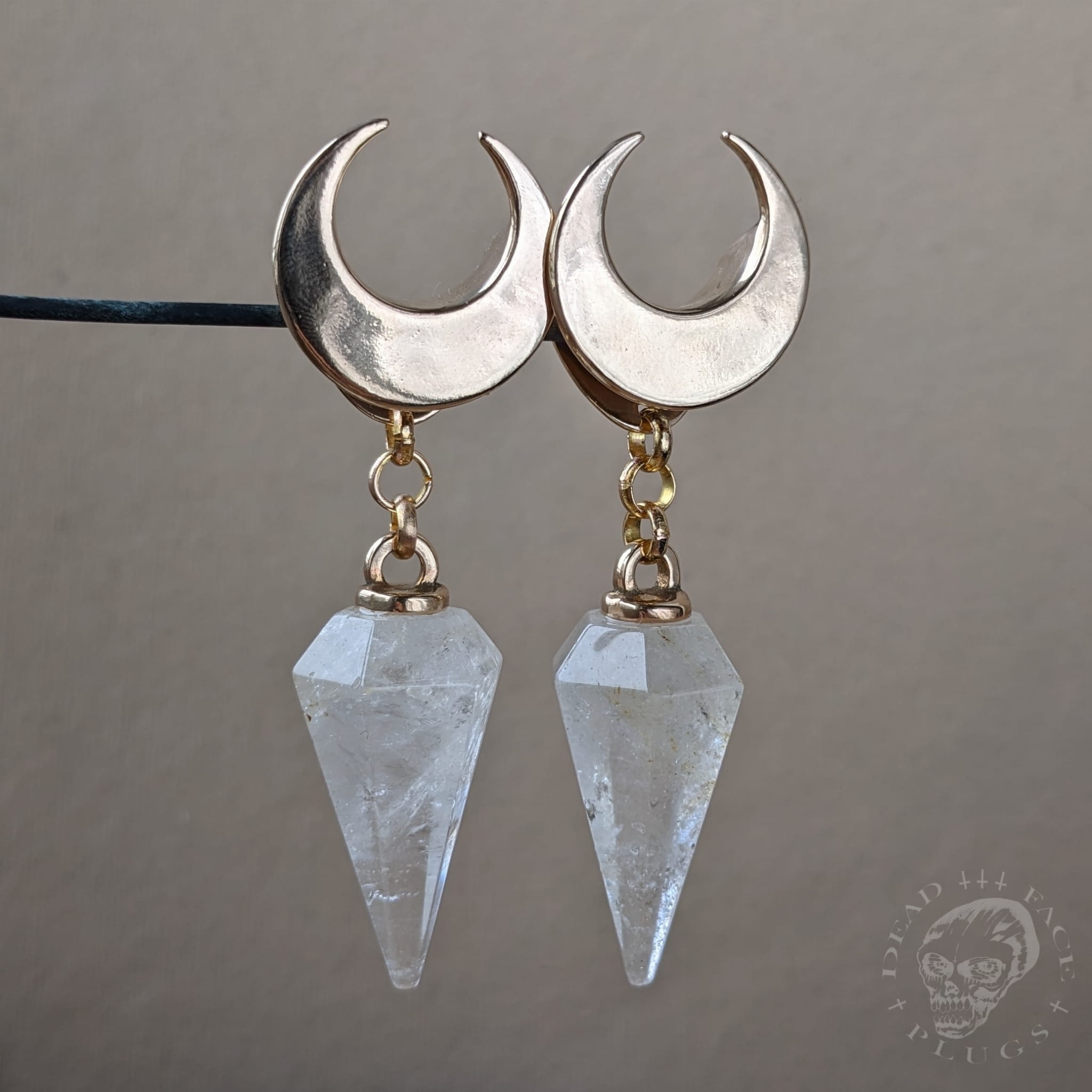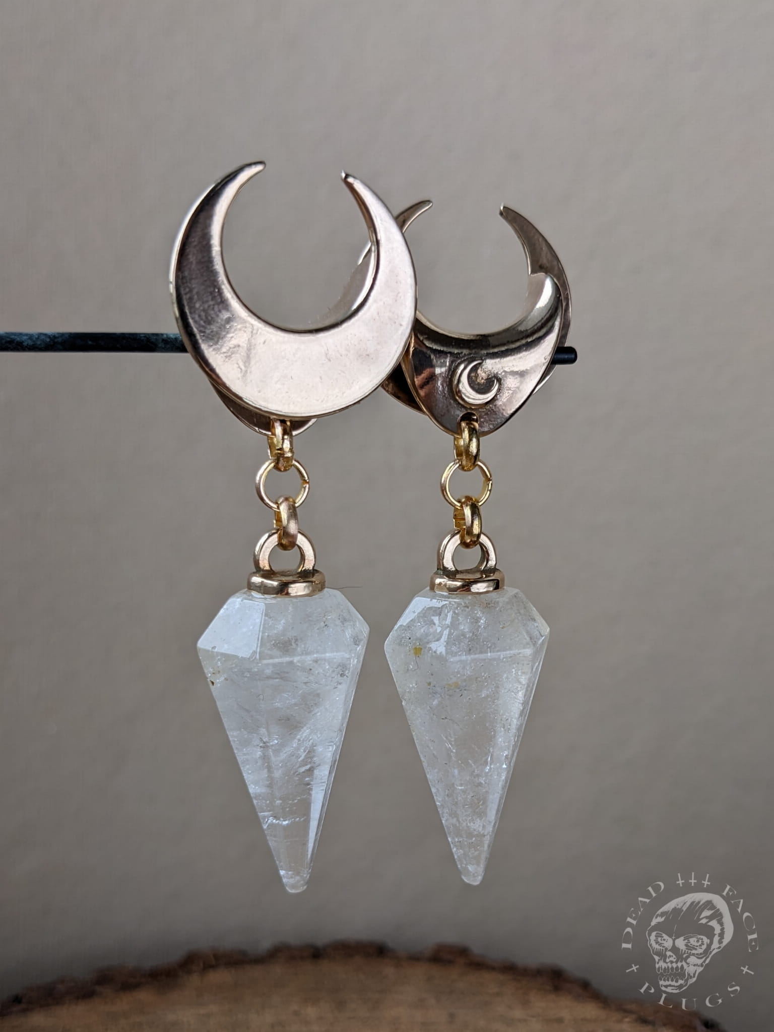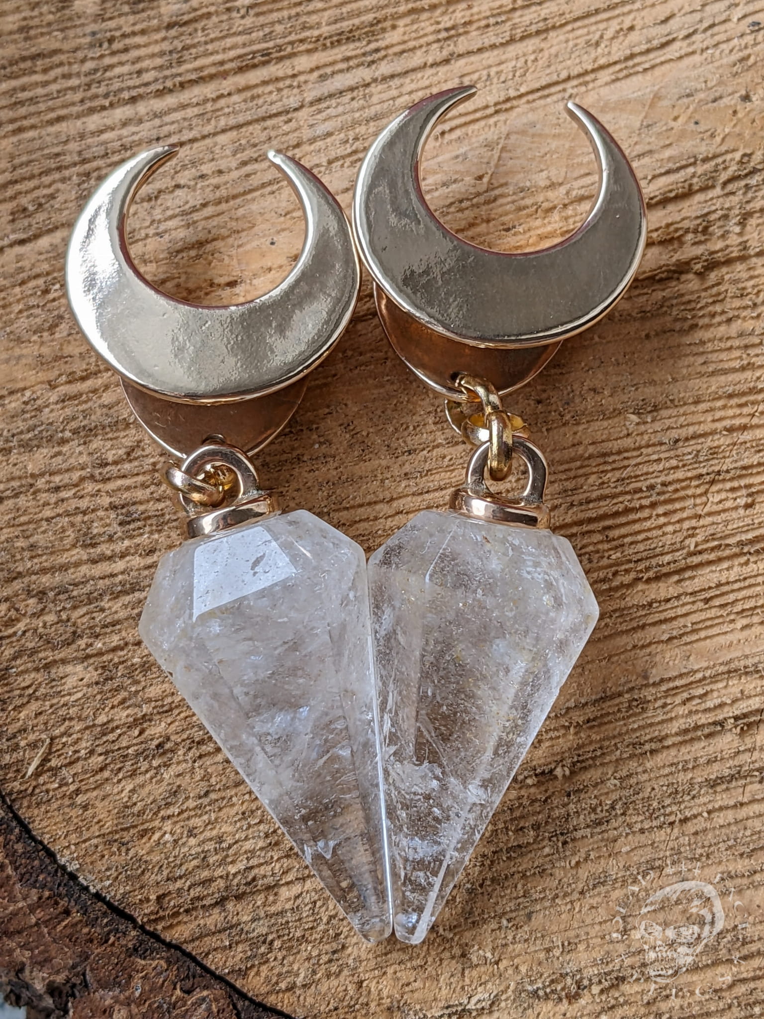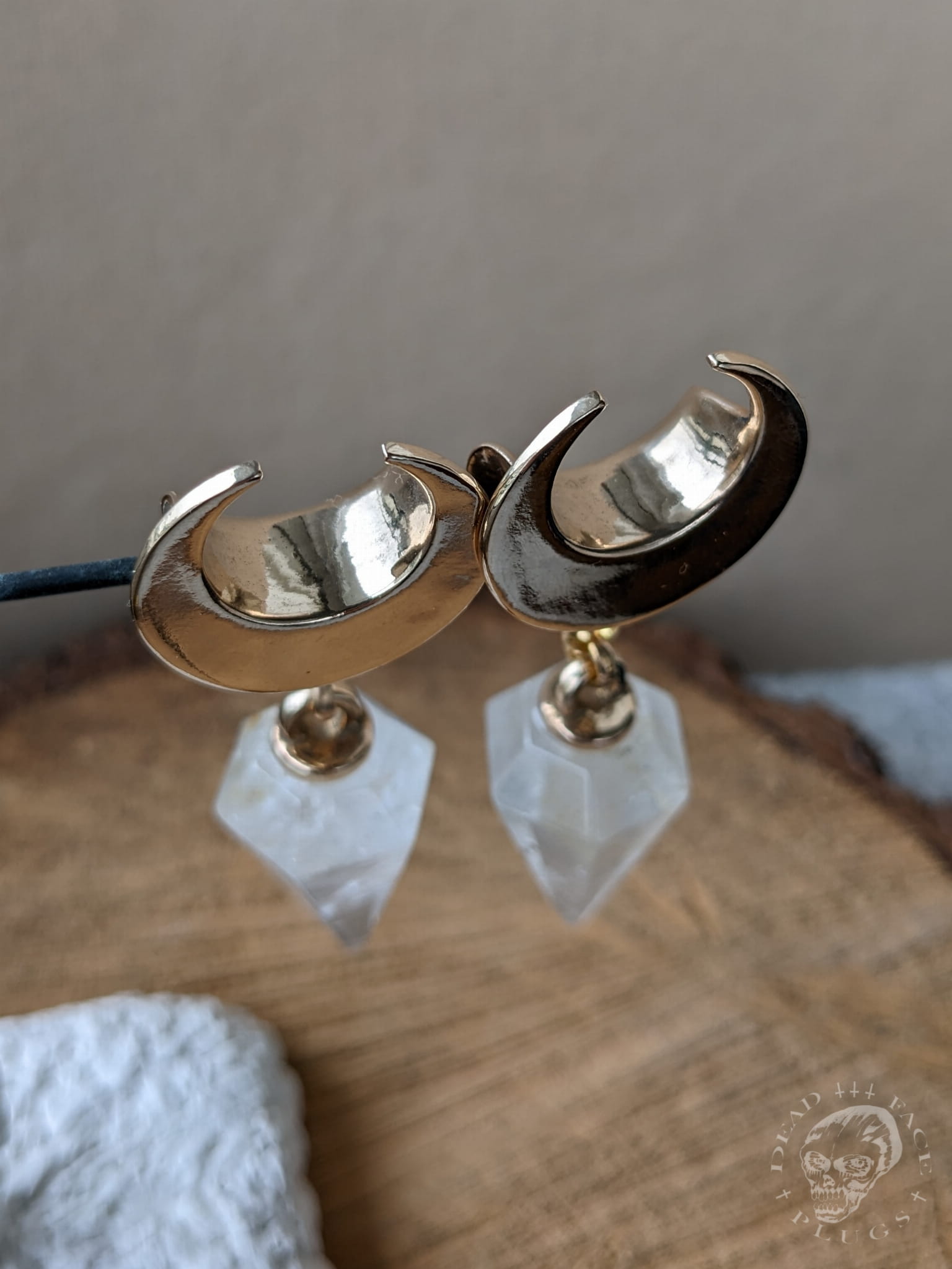 Moon & Crystal Rock Ear Weights - Crescent Moon Hanging Style