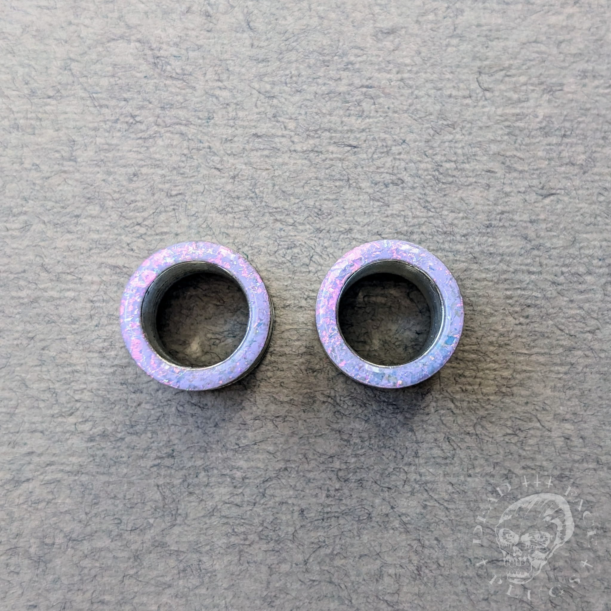 Highlight your style with plugs that combine subtle lilac color, opalescent sparkle, and handcrafted charm!
